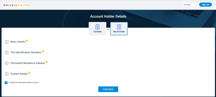 | All directors KYC successful, DriveWealth is now processing entity-level information and documentation |