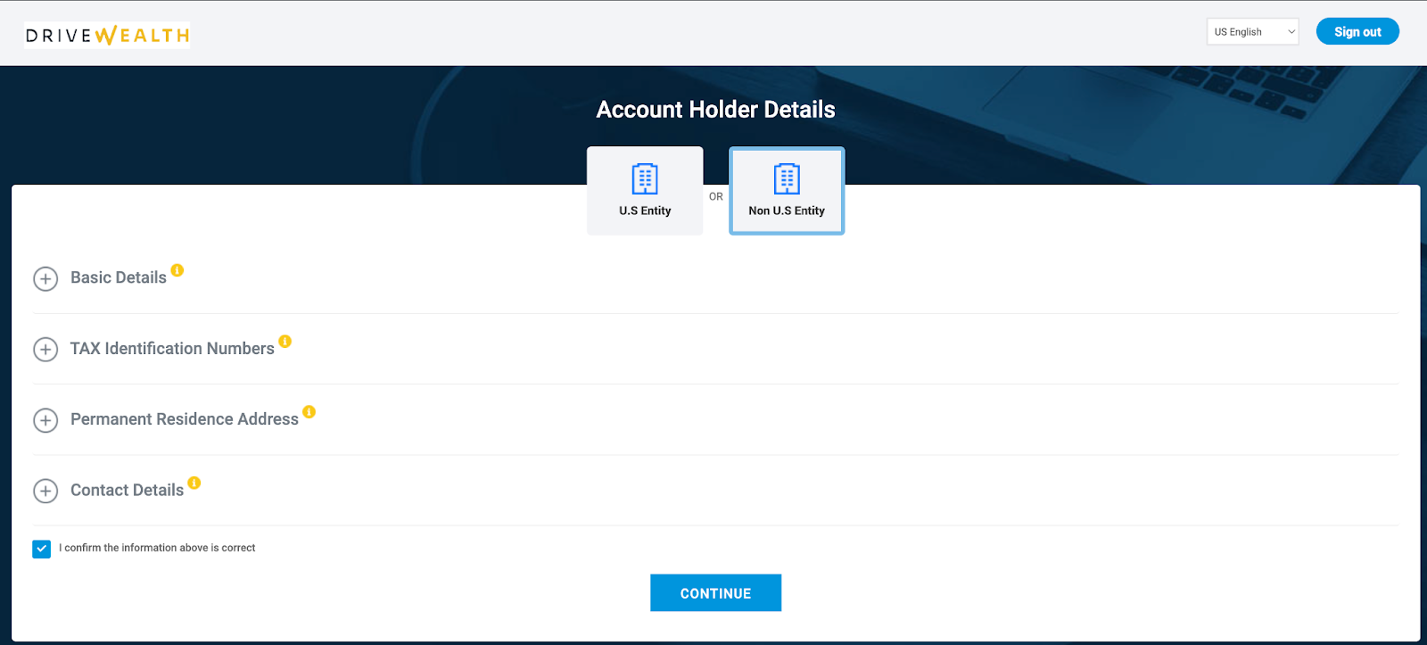 Applicable for foreign entities only. US entities can skip this step as W9 forms are auto-generated by DriveWealth.